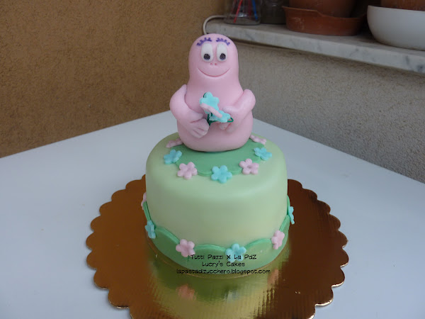 mi sono trovata un po in difficoltà, perchè i Barbapapà erano proporzionati all’altezza solita della mia torta (7-8 cm) e quindi ho dovuto mangiarci su, per capire come piazzarle…. piu tardi il risultato finale 😉